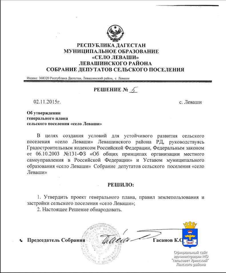 Главная / Генеральный план сельского поселения "село Леваши" / Генеральный план сельского поселения "село Леваши"